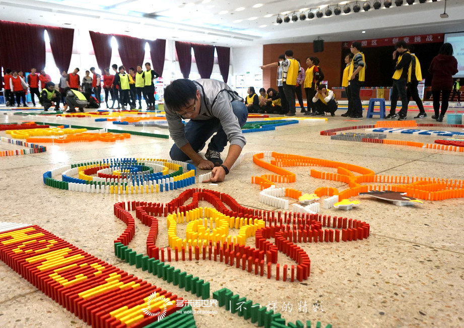 經(jīng)過緊張激烈的初賽,共有8支隊(duì)伍順利挺進(jìn)決賽。決賽內(nèi)容為多米諾創(chuàng)意設(shè)計(jì)碼放和團(tuán)隊(duì)任務(wù)碼放,需要更加專業(yè)的多米諾碼放技巧,和有思想創(chuàng)意的設(shè)計(jì)構(gòu)思。專業(yè)水準(zhǔn)的比賽內(nèi)容,令獲得決賽名額的隊(duì)伍還沒來的及品嘗勝利的喜悅,就開始著手為決賽做起了準(zhǔn)備。