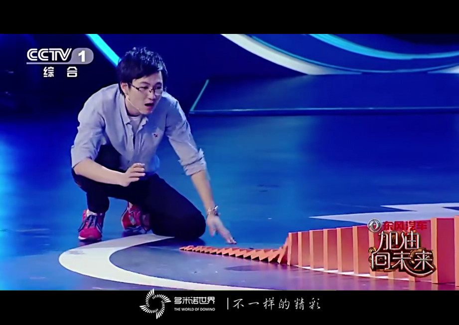 2016年8月7日,作為具有時代感、代表性的科學實驗項目:多米諾骨牌,出現(xiàn)在《加油!向未來》第6期的節(jié)目中。本著嚴謹?shù)目茖W態(tài)度,節(jié)目攝制組特別邀請多米諾世界團隊,完成大小多米諾競速的科學試驗。