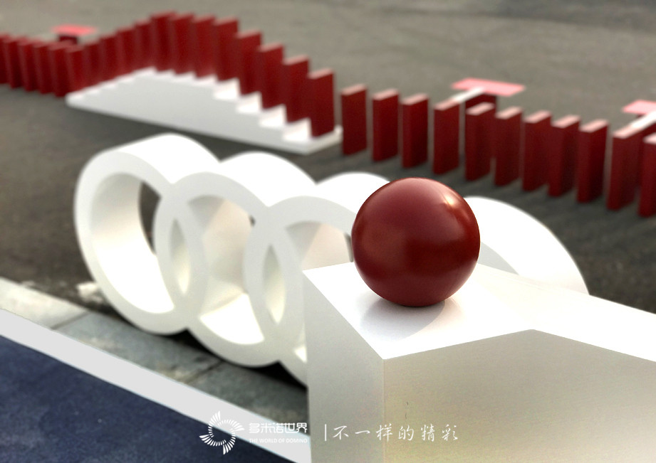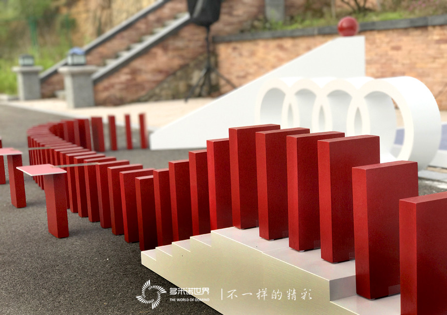 紅色的骨牌高高低低、錯落有致,為啟動活動增添了一份新奇與創(chuàng)意。當啟動嘉賓將紅色的球放入滑道,一枚枚骨牌順序前行,由骨牌組成的立體多米諾畫面,瞬間變換成活動主題畫面,“駕控孤島”駕控體驗之旅文字映入觀禮嘉賓眼中,活動現場達到高潮。