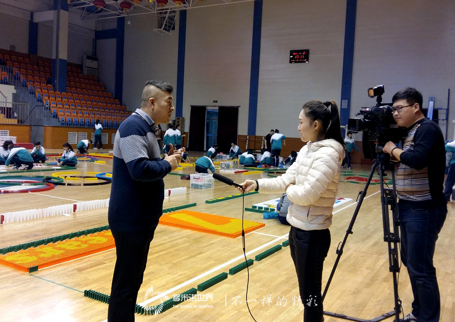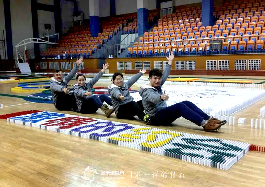 在所有師生的共同努力下,不到兩天的時(shí)間,11余萬枚骨牌穩(wěn)穩(wěn)站立在了場地中,精美的多米諾畫卷展現(xiàn)在大家面前。