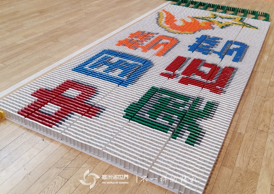 本次展演,既有小骨牌,又有特制大骨牌;既有既有整幅的多米諾畫面,又有生動的輪廓圖案;既有小橋穿插其中,又有立體骨牌擺放;內(nèi)容豐富多彩,擺放難度也隨之增加。