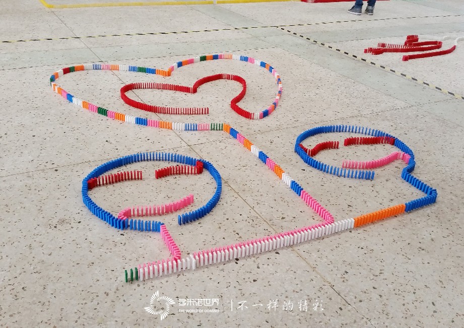 比賽分為四組,每個團隊給自己的組隊取了響亮的名字(雄鷹隊,富強隊,沖鋒隊,夢之隊)和有力的口號,大家根據(jù)自己的隊名,開始勾畫著創(chuàng)意,不斷地修改著,計算著用牌的數(shù)量,還要搭配顏色,希望把創(chuàng)意做到完美。這邊創(chuàng)意的場面熱鬧,那邊規(guī)定畫面的擺放也在井然有序地開展著。對于初次參與多米諾活動的隊員來說,今天的任務(wù)確實不容易,每個團隊都或多或少地出現(xiàn)了意外倒牌的現(xiàn)象,但是大家沒有絲毫的氣餒,表現(xiàn)出頑強的意志,越挫越勇,最終功夫不付有心人,完成了整體圖案的擺放。當最后一個連接點完成的時候,現(xiàn)場寂靜片刻之后,大家不約而同地鼓起了掌,為自己的努力鼓掌,為團隊合作的力量鼓掌,為大家的成果鼓掌。畫面依次展現(xiàn),所有的骨牌完美呈現(xiàn),這一刻,緊張的心情得到了釋放,成就感油然而生,歡呼雀躍,留下難忘的合影。