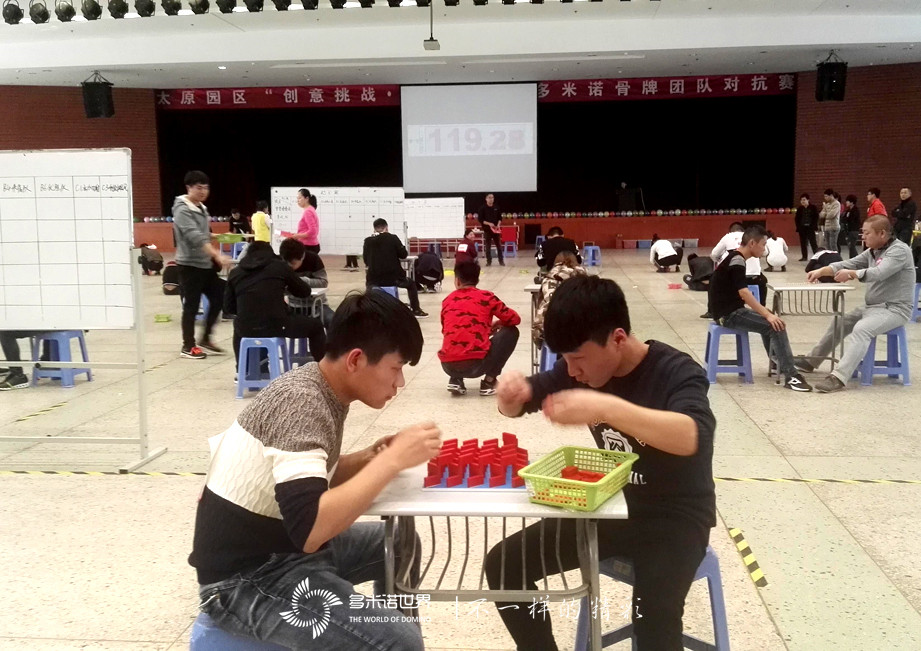 2016年11月20日,富士康太原園區(qū)“創(chuàng)意挑戰(zhàn),超越自我”多米諾骨牌團(tuán)隊(duì)對抗賽開賽。初賽為淘汰賽,總共18支隊(duì)伍,288人參賽。
