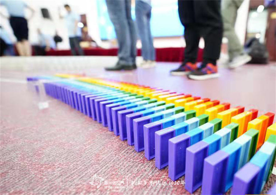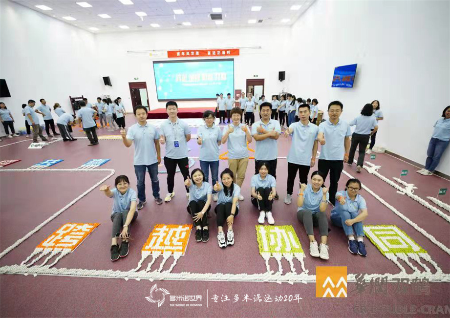 2021年9月4日,50位雙鶴風(fēng)華計劃的伙伴相聚懷柔,共同迎來多米諾骨牌團(tuán)隊大挑戰(zhàn)。在多米諾世界老師的講解后,大家開始分組行動,繪制畫面,搭建文字,機(jī)關(guān)組裝和調(diào)試,每一個任務(wù)內(nèi)容都在有條不紊地進(jìn)行著,最終經(jīng)過兩個小時的搭建,骨牌畫卷順利完成。在大家的共同倒計時聲中,小球成功落入軌道,觸發(fā)骨牌一路前行,經(jīng)過一幅幅多米諾骨牌搭建出來的畫面,和一個個隊員們零件創(chuàng)造的機(jī)關(guān)裝置,最終成功展現(xiàn)雙鶴藥業(yè)標(biāo)識畫面,多米諾團(tuán)隊大挑戰(zhàn)獲得百分百成功。