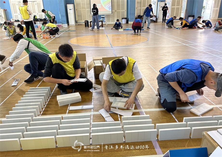 經(jīng)過老師的講解,大家明確了團(tuán)隊(duì)的共同目標(biāo),開始分組有序搭建,短短三個(gè)小時(shí)的時(shí)間,大家從對項(xiàng)目的陌生,到默契的配合以及熟練的進(jìn)行骨牌碼放,完成骨牌畫卷和機(jī)關(guān)裝置的聯(lián)動(dòng),在共同目標(biāo)的引導(dǎo)和團(tuán)隊(duì)每一位伙伴的努力下,屬于龍沙團(tuán)隊(duì)的多米諾作品搭建完成。