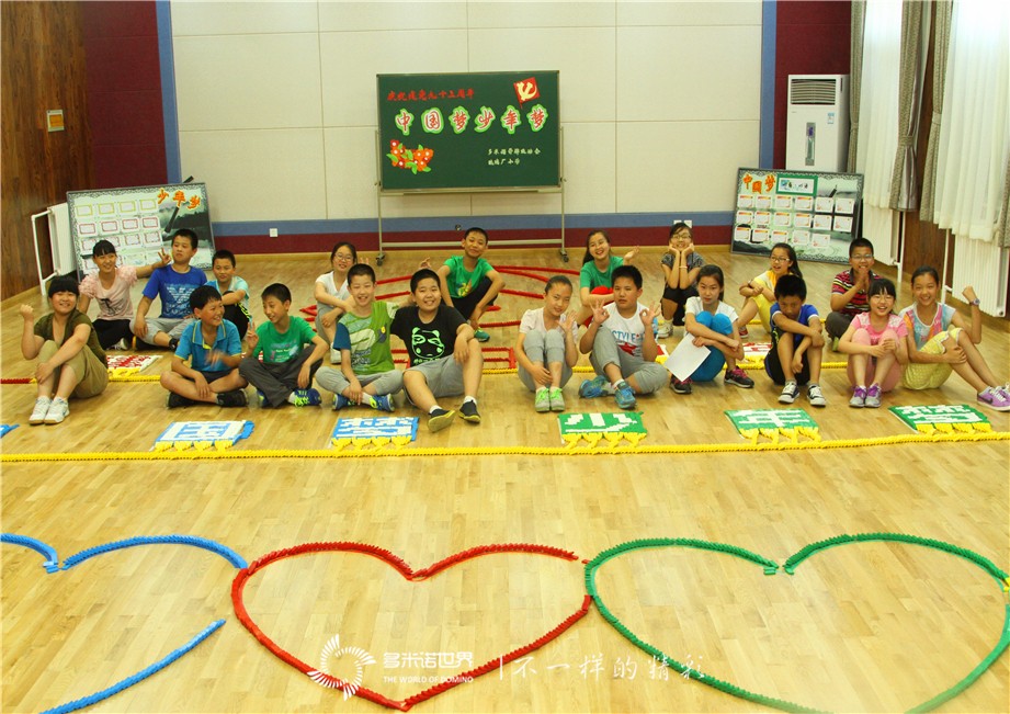 2014年6月18日,為了慶祝建黨93周年,北京琉璃廠小學(xué)舉行了主題為“中國夢、少年夢”的多米諾骨牌運動會,并邀請了多米諾世界的老師們進行活動策劃與現(xiàn)場指導(dǎo)。