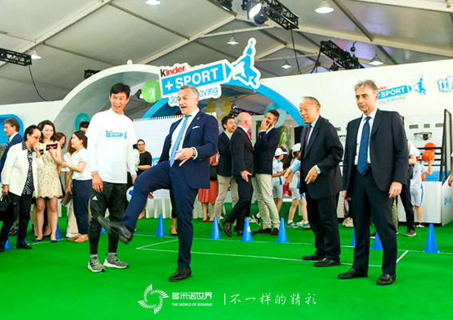 發(fā)布會(huì)現(xiàn)場(chǎng),由多米諾世界團(tuán)隊(duì)設(shè)計(jì)實(shí)施的新一季“健達(dá)+運(yùn)動(dòng)”校園運(yùn)動(dòng)季多米諾啟動(dòng)儀式隆重舉行。意大利駐華大使謝國(guó)誼(Ettore Francesco Sequi)閣下、中國(guó)人民外交學(xué)會(huì)名譽(yù)會(huì)長(zhǎng),前中國(guó)外交部部長(zhǎng)李肇星閣下、上海市浦東新區(qū)商務(wù)委員會(huì)主任辛雅琴、中國(guó)足球名宿,前國(guó)腳區(qū)楚良、費(fèi)列羅中國(guó)區(qū)總經(jīng)理馬如城(Mauro De Felip),作為啟動(dòng)嘉賓,共同出席了啟動(dòng)儀式。