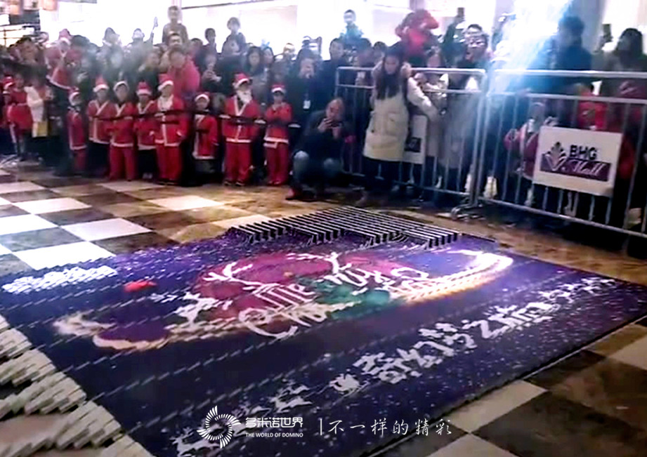 募集而來(lái)的一個(gè)個(gè)圣誕“小爺爺”積極的參加多米諾的碼放。