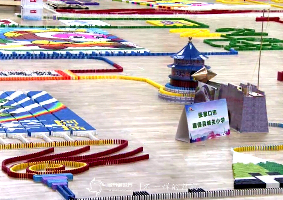 本年度的迎冬奧青少年多米諾大賽共有來自北京、張家口共23所學(xué)校的代表隊(duì)參賽,參賽學(xué)生人數(shù)共計(jì)184人。他們自11月16日一早開始在北京市昌平體育館集中擺放骨牌,經(jīng)歷兩天時(shí)間在11月17日晚最終完成骨牌擺放。每個(gè)參賽隊(duì)都圍繞“我心中的冬奧吉祥物”進(jìn)行了主題設(shè)計(jì)。參賽的作品伴隨著迎接冬奧的腳步,融合奧運(yùn)元素、科技元素、文化元素,用多米諾骨牌的形式向人們展示著奧運(yùn)的魅力。最終昌平區(qū)實(shí)驗(yàn)中學(xué)小學(xué)部、昌平區(qū)十三陵中心小學(xué)、昌平區(qū)南口鐵道北中學(xué)、昌平第一中學(xué)天通苑校區(qū)、張家口市康??h城關(guān)小學(xué)獲得金獎(jiǎng)。