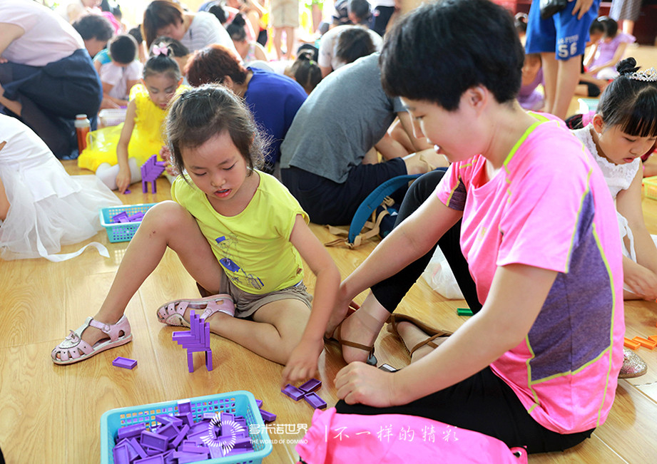2018年7月15日,四季青青少年活動(dòng)中心內(nèi)熱鬧非凡,戲劇班、朗誦班、舞蹈班的60余位小學(xué)員,正在進(jìn)行匯報(bào)表演,向爸爸媽媽們展示課程學(xué)習(xí)成果。匯報(bào)演出結(jié)束后,多米諾世界團(tuán)隊(duì)為小朋友們帶來的多米諾大講堂,不僅吸引了現(xiàn)場的小朋友們,在旁觀看的大朋友們也躍躍欲試,一起參與到游戲體驗(yàn)活動(dòng)中,熱情高漲的多米諾游戲挑戰(zhàn)作為最后一個(gè)環(huán)節(jié),為一天的活動(dòng)劃上了圓滿的句號(hào)。