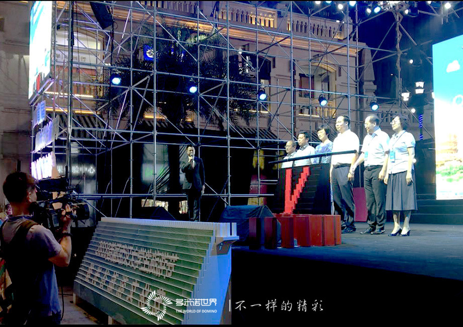 2018年6月22日晚,由武漢市旅游發(fā)展委員會、武漢東湖新技術(shù)開發(fā)區(qū)管委會、武昌區(qū)人民政府、共青團武漢市委員會、長江日報報業(yè)集團、武漢廣播電視臺(集團)主辦的“2018首屆武漢大學(xué)生旅游節(jié)暨光谷旅游文化節(jié)”,在光谷步行街柏林廣場隆重揭幕。由多米諾世界團隊親臨武漢現(xiàn)場搭建,多位領(lǐng)導(dǎo)共同啟動的多米諾啟動儀式,拉開了首屆武漢大學(xué)生旅游節(jié)的序幕,新穎、壯觀的啟動儀式,吸引了來賓與觀眾的目光,看著多米諾骨牌瀑布般前行、瞬間翻轉(zhuǎn),現(xiàn)場頓時掌聲雷動、歡呼聲迭起。